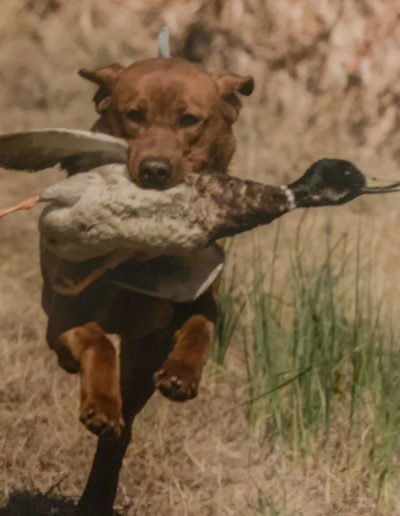 Mack is a once in a lifetime Chesapeake Bay Retriever. He’s an extremely talented and driven retriever who competes in AKC Hunt Tests and Field Trials. He earned his Master Hunter title at the age of two years and 10 months of age. Currently, he’s competing in Qualifying Field Trial stakes. He started as a hunt test/gun dog and is learning about the long game. He is an excellent marker, runs hard for marks and blinds, and he loves birds. Mack is a pleasure to campaign and hunt with. He is quiet in the blind and field, very steady, and always wants to please. Mack is a great working dog, always trying to do the right thing, and is not generally moody. He’s been shot over on dove, duck, geese, and upland hunts. He has a perfect motor for upland work, as he works hard and purposely but doesn’t tire himself out too quickly. He loves to hunt ducks but taking on big geese is his absolute favorite.